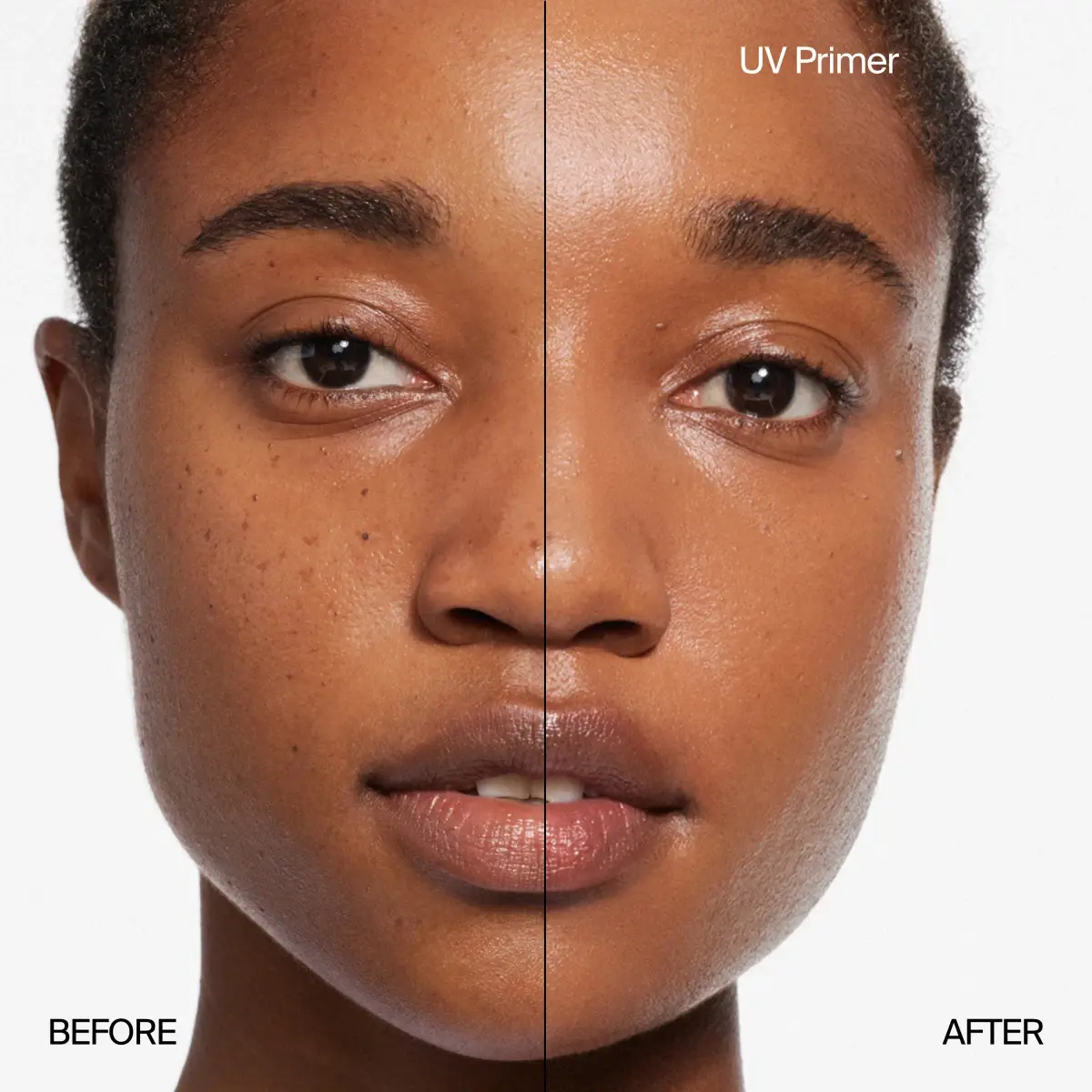 Radiant UV face primer with SPF 30 sets invisibly under makeup for a smooth, glowing finish.