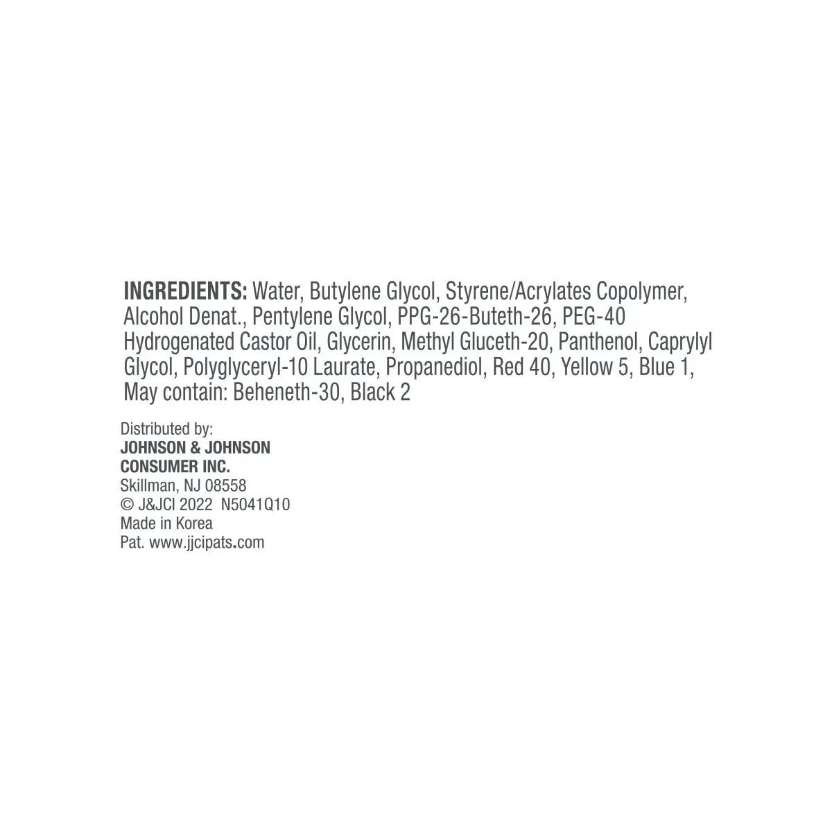 Water, Butylene Glycol, Styrene/Acrylates Copolymer, Alcohol Denat., Pentylene Glycol, Ppg-26-Buteth-26, Peg-40 Hydrogenated Castor Oil, Glycerin, Methyl Gluceth-20, Panthenol, Caprylyl Glycol, Polyglyceryl-10 Laurate, Propanediol, Red 40, Yellow 5, Blue 1, May Contain: Beheneth-30, Black 2