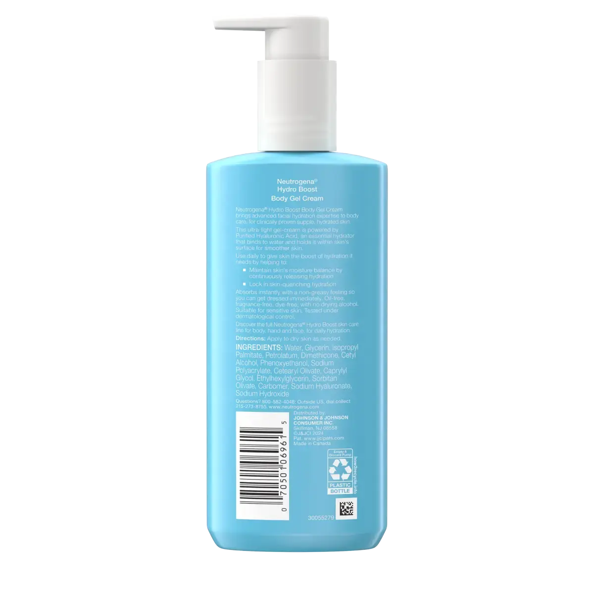 Neutrogena Fragrance-Free Hydro Boost Body Gel Cream with Hyaluronic Acid for daily skin hydration.