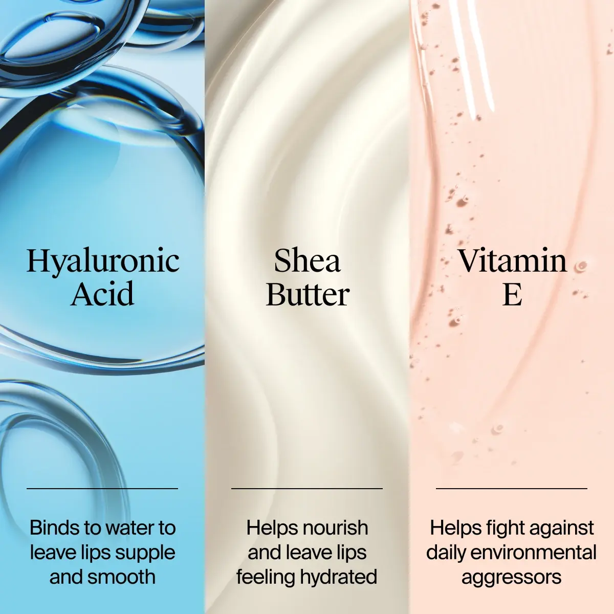 Formulated with vitamin E to defend lips from daily environmental aggressors