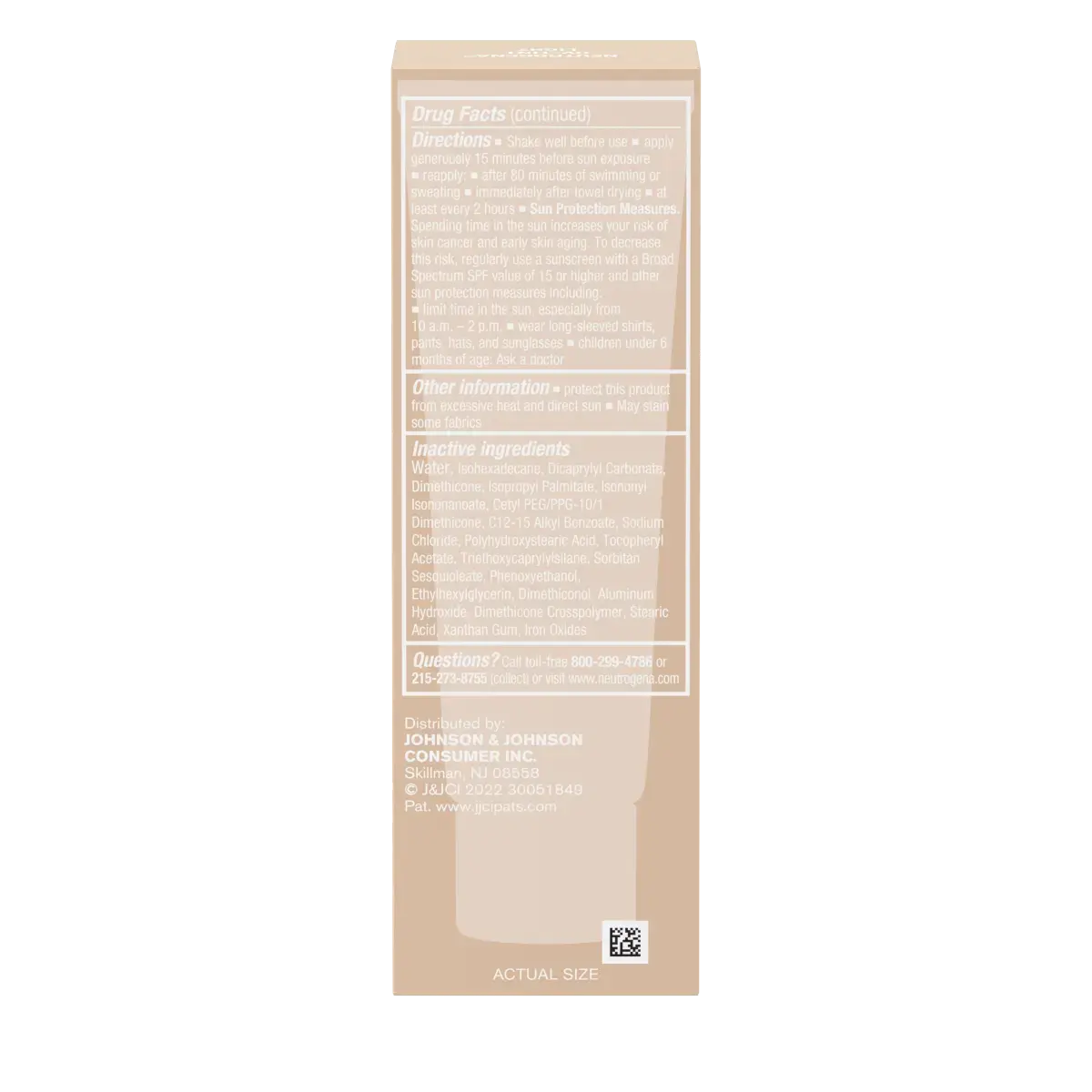 May stain some fabrics Questions? Call toll-free 800-299-4786 or 215-273-8755 (collect) or visit www.neutrogena.com