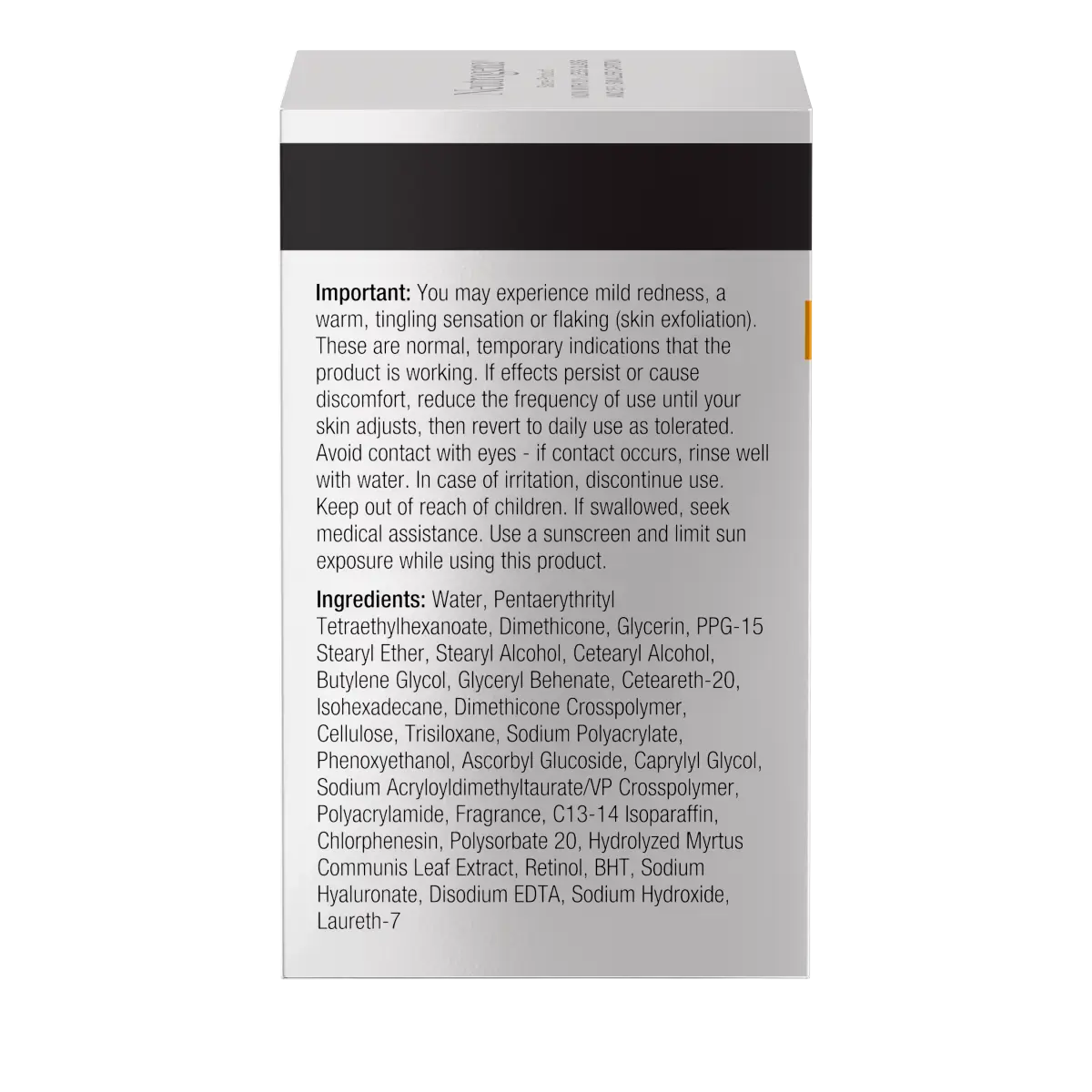 Important: You may experience mild redness, a warm, tingling sensation or flaking (skin exfoliation). These are normal, temporary indications that the product is working. If effects persist or cause discomfort, reduce the frequency of use until your skin adjusts, then revert to daily use as tolerated. Avoid contact with eyes - if contact occurs, rinse well with water. In case of irritation, discontinue use. Keep out of reach of children. If swallowed, seek medical assistance. Use a sunscreen and limit sun exposure while using this product.