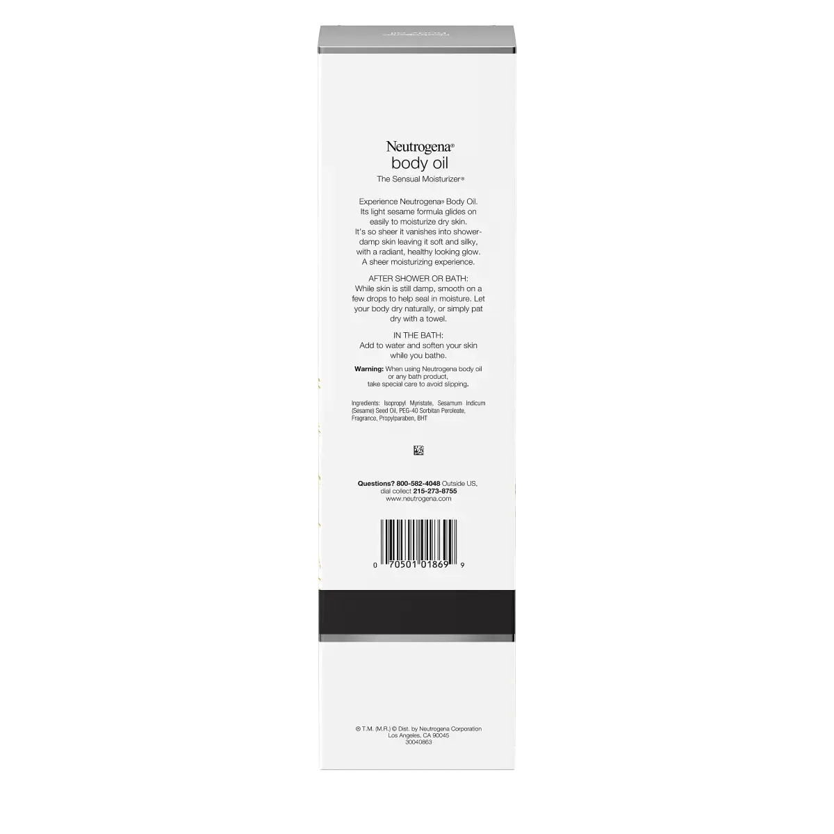 When using Neutrogena body oil or any bath product, take special care to avoid slipping.