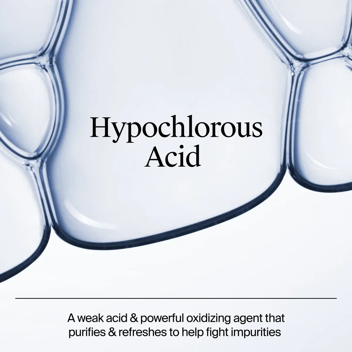 This stable, effective Hypochlorous Acid spray to helps fight impurities on face and body skin.