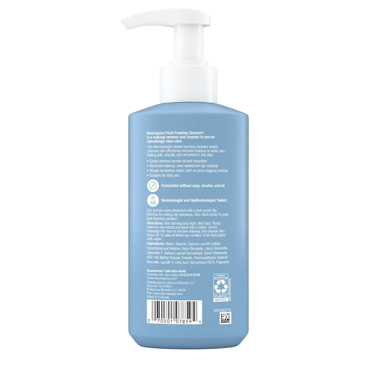 Deeply cleanse skin and effectively remove makeup, even waterproof mascara, with Neutrogena Fresh Foaming Facial Cleanser. This all-in-one face wash with Glycerin is suitable for normal to oily skin. This makeup remover and facial cleanser helps remove makeup, even waterproof eye makeup, and leaves skin feeling soft, smooth, and refreshingly clean. The daily face cleanser creates a foamy lather that easily washes away dirt, excess oil, and impurities. Dermatologist- and ophthalmologist- tested, the non-comedogenic formula with glycerin rinses completely clean, with no pore-clogging residue and is formulated free of soap, alcohol, and oil. Use this foaming makeup removing cleans-er day and night as a part of your daily skincare routine. To use, wet your face, pump the face wash into your hands and work into a foaming lather. Gently massage into your skin to remove makeup and cleanse, and rinse thoroughly with water.