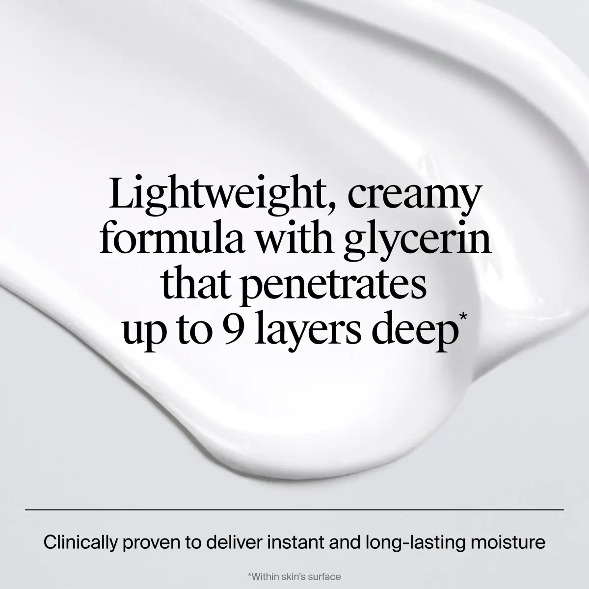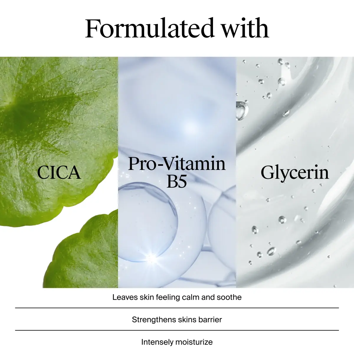 Cream, formulated with CICA, Pro-vitamin B5, and glycerin, leaves skin feeling hydrated and smooth.