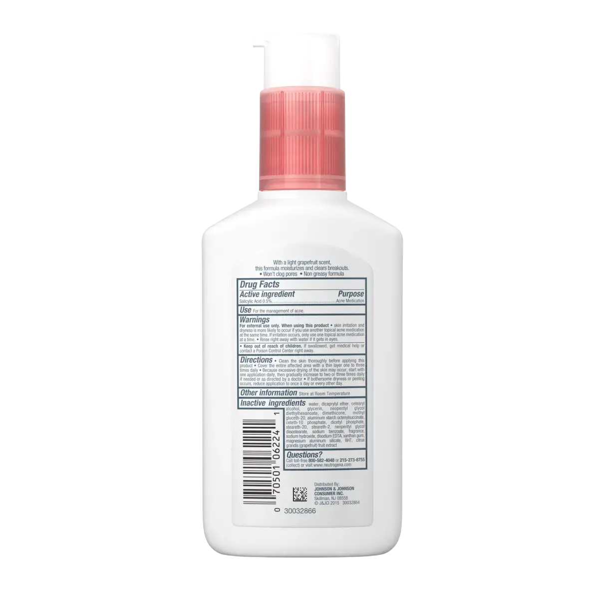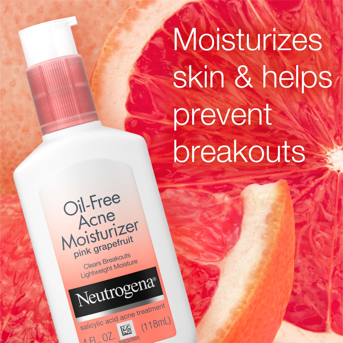 Neutrogena Oil-Free Acne Facial Moisturizer with pink grapefruit hydrates skin and prevents breakouts in one simple step. This lightweight daily face lotion contains 0.5% salicylic acid, an acne-fighting ingredient, while pink grapefruit adds a refreshing twist. Designed for acne-prone skin, the water-based, non-comedogenic formula is oil-free and absorbs quickly without a greasy feel. Gentle enough for daily use, this face moisturizer keeps skin hydrated while helping to clear acne. Apply one to three times daily after cleansing for soft, smooth skin that stays clear and breakout-free.
