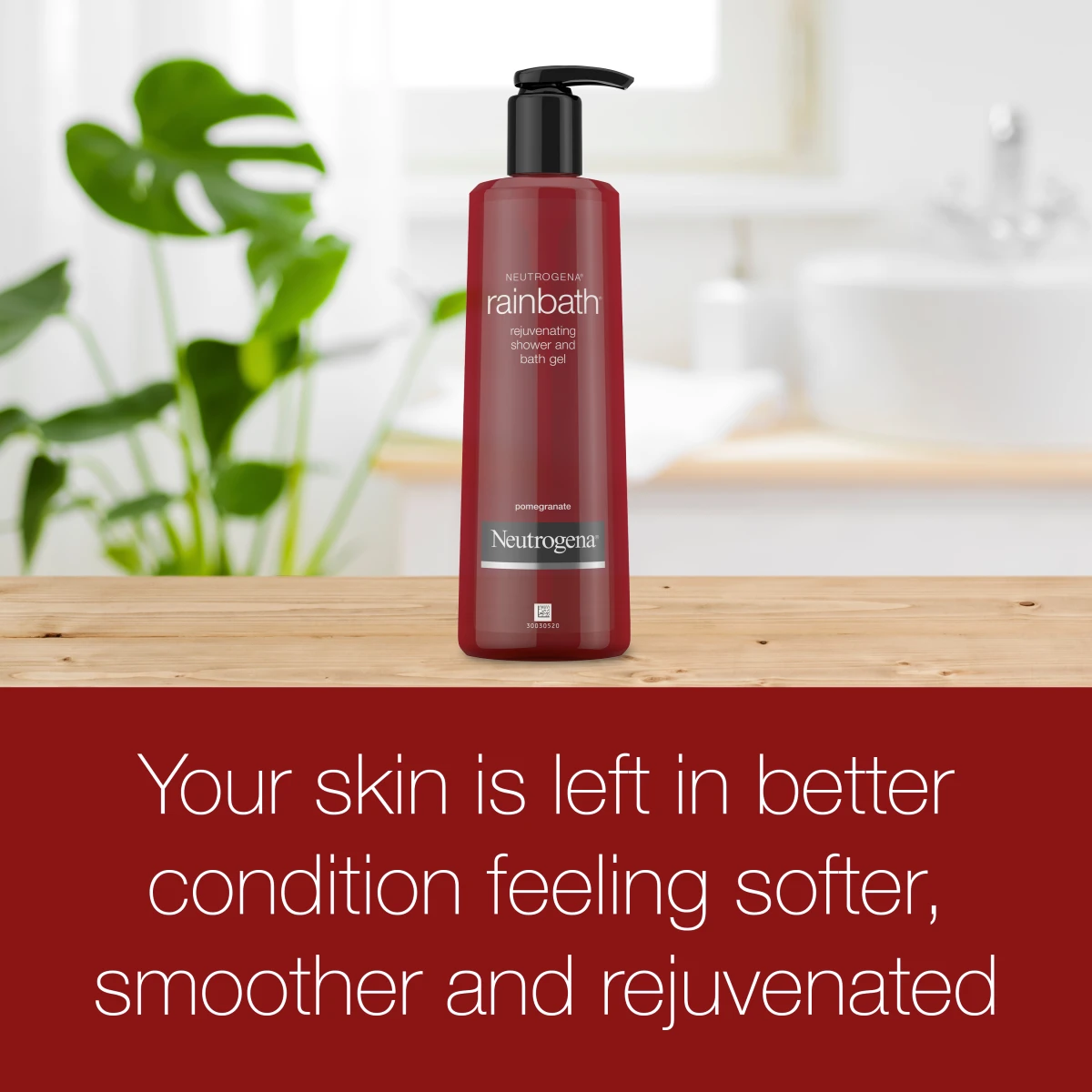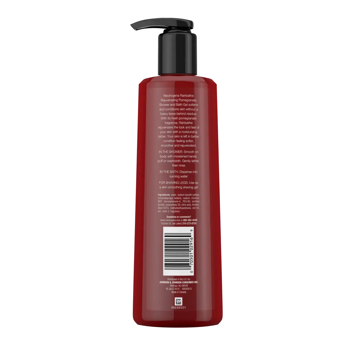Help cleanse and refresh your body with Neutrogena Rainbath Rejuvenating Pomegranate Shower and Bath Gel. For daily use, this invigorating shower and bath wash cleanses, softens, and conditions skin with the fresh fragrance of Pomegranate. The rich, conditioning lather of this shower gel softens and conditions your skin and rinses clean without leaving any heavy residue. You can smooth it on your body using moistened hands, a puff, or a washcloth, or you can add it to your bath or use it as a skin-smoothing shaving gel. Turn your ordinary shower into a pampering spa experience!