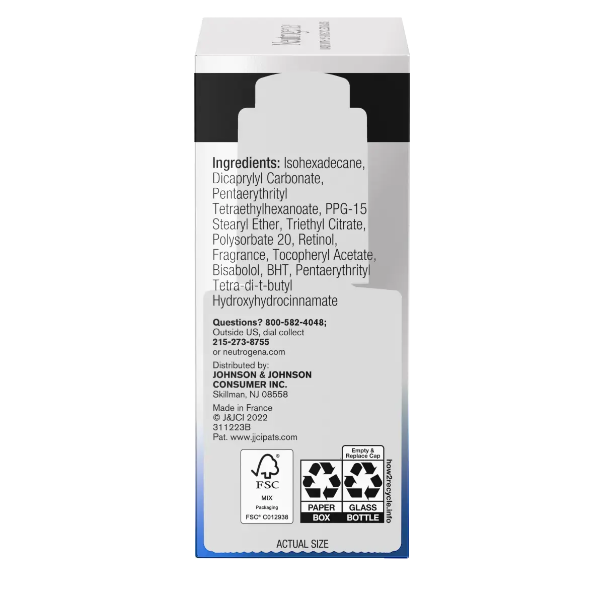 Recyclable bottle of Neutrogena Rapid Wrinkle Repair Retinol Pro+ Power Anti-Aging Facial Serum.