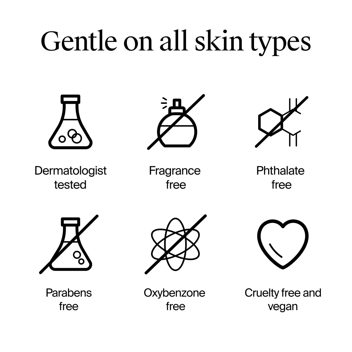 Gentle vegan formula: fragrance-free, paraben-free, oxybenzone-free, phthalate-free.