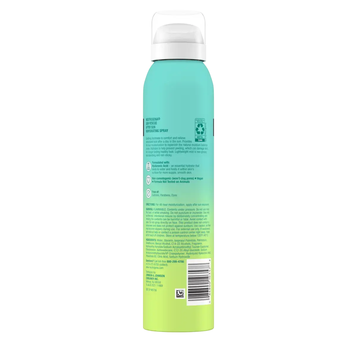 Neutrogena Sun Rescue After Sun Rehydrating Spray hydrates skin with hyaluronic acid.